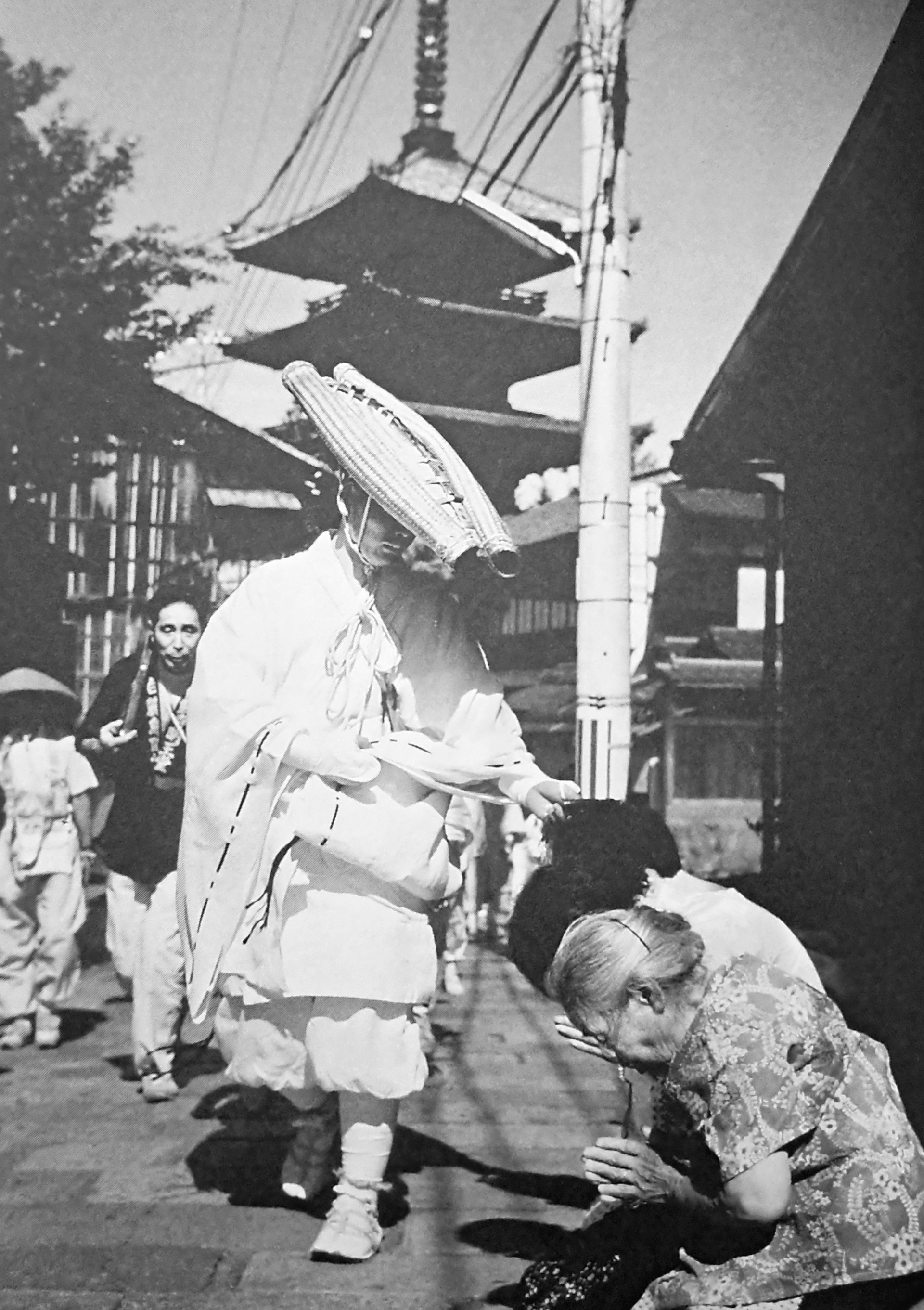 Mitsunaga: Yes, that's right, an extension of the practice is the 21-ri 'grand circulation' of the hustle and bustle that is Kyoto city. It may seem odd for a Buddhist monk to worship at a Shrine [of kami] but I walk from temple to temple, shrine to shrine, all around Kyoto, among the people of Kyoto, for 100 days. [providing blessings to all who request it along the roadsides]. Finally, you return to the mountain for the final stint of your own training, making for a total of 1000 days.